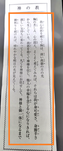 これはおみくじの裏面です。三番目に見るのは、このメッセージです(オレンジの枠)。表面の赤枠のメッセージでピンとこなくても、裏面のメッセージが今の自分にあてはまりすぎている、という事がよくあります。