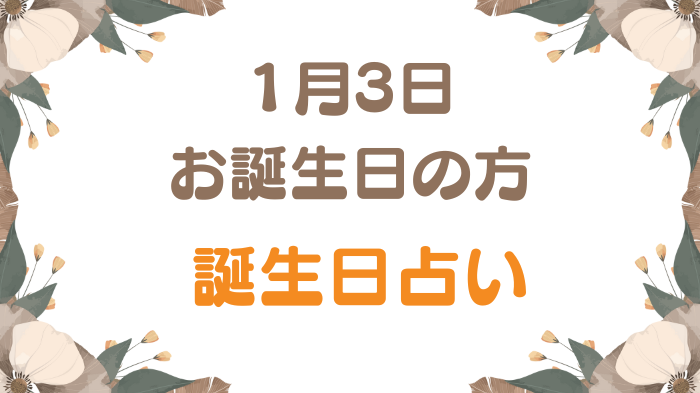1月3日生まれのあなたは、新年の活気がまだ続く中で生を受けた特別な存在です。この日付があなたの性格に独特の魅力を与えています。
